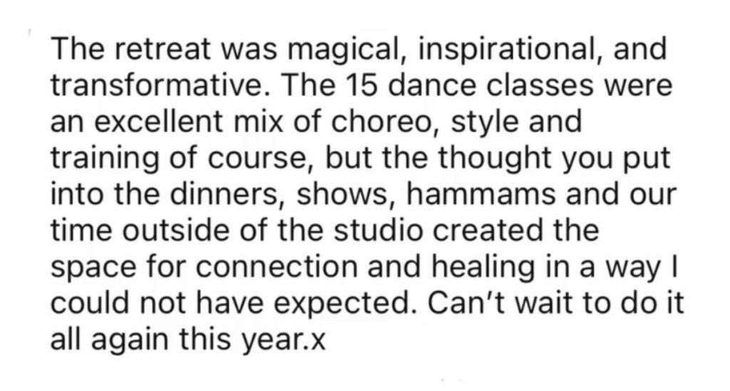 If you joined us last year, then you’ll know what a once in a lifetime experience this retreat is! The ladies made bonds to last forever and we had an amazing time exploring the Marrakech streets, nightlife as well as dancing our days in beautiful studios, whilst keeping nourished with good food.